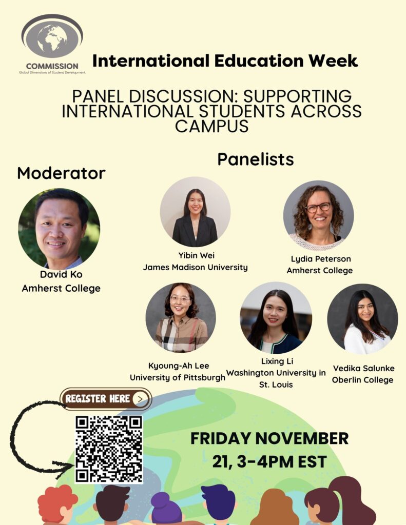 This webinar will bring in professionals from various functional areas to talk about how they work with international students on campus. The purpose of this panel is to exchange ideas on evidence-based practices on supporting international students. This webinar is presented by ACPA’s Commission for Global Dimensions of Student Development (CGDSD) as a part of International Education Week (IEW).